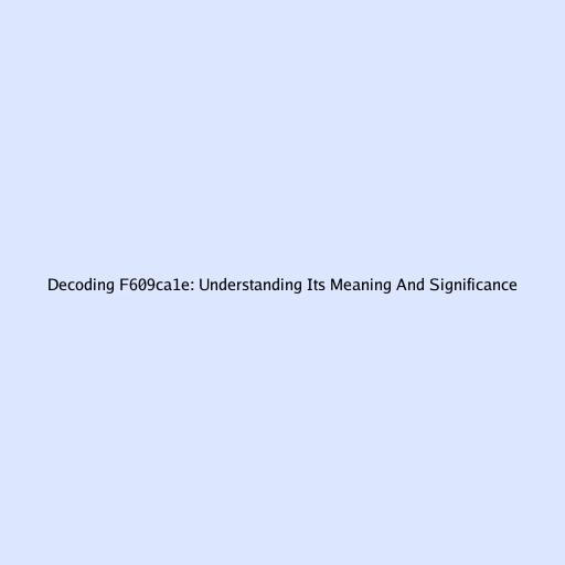 Decoding f609ca1e: Understanding Its Meaning and Significance