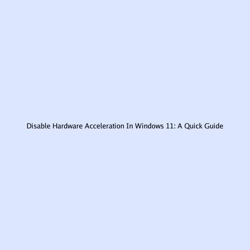 Disable Hardware Acceleration In Windows 11: A Quick Guide
