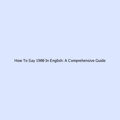 How to Say 1900 in English: A Comprehensive Guide