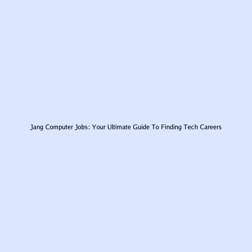 Jang Computer Jobs: Your Ultimate Guide to Finding Tech Careers