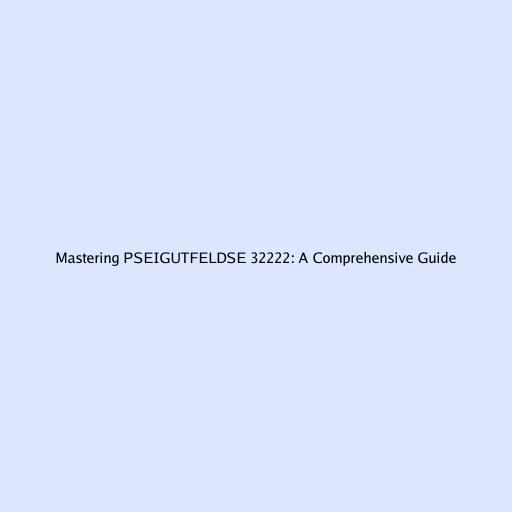 Mastering PSEIGUTFELDSE 32222: A Comprehensive Guide