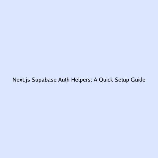 Next.js Supabase Auth Helpers: A Quick Setup Guide