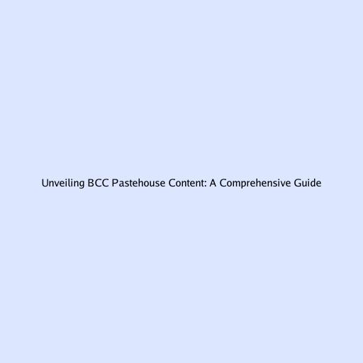 Unveiling BCC Pastehouse Content: A Comprehensive Guide