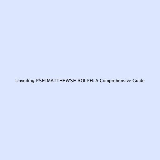 Unveiling PSEIMATTHEWSE ROLPH: A Comprehensive Guide